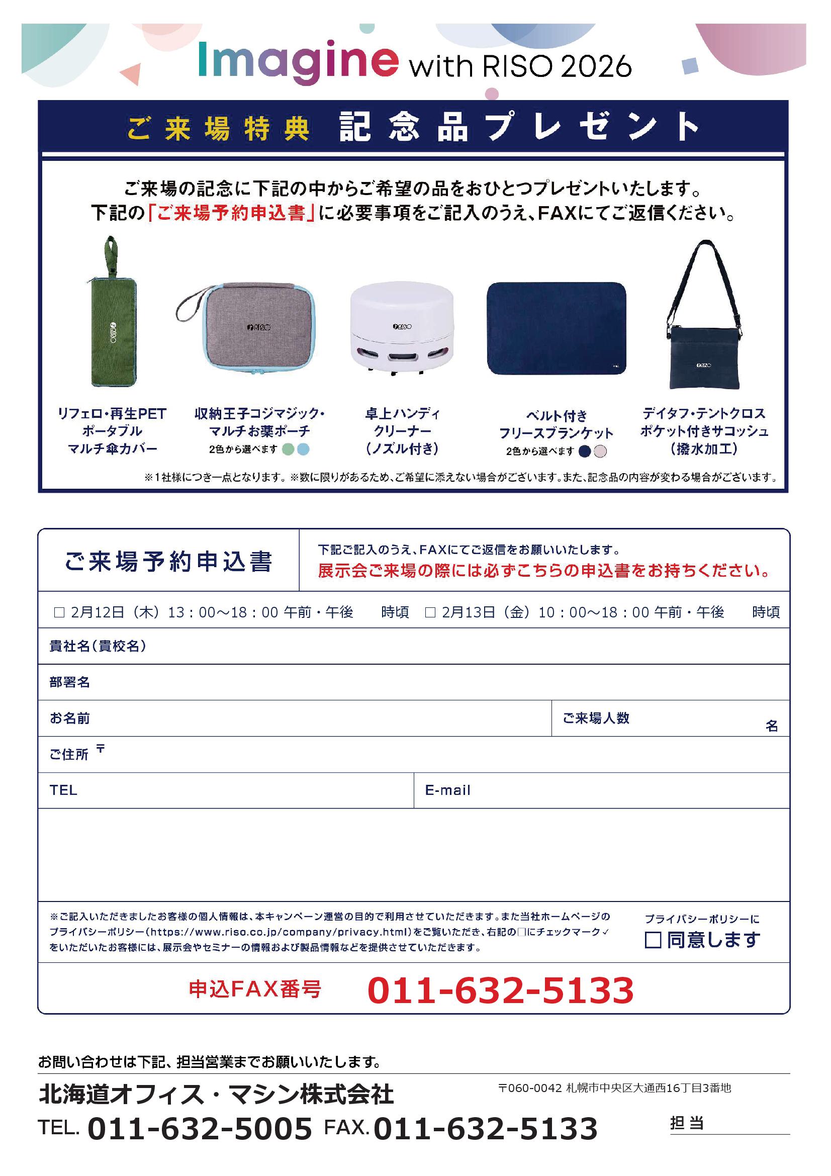 ご来場予約は、011-632-5133までFAXにてお願いします。